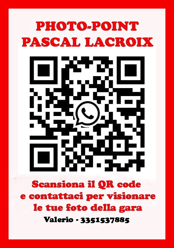 - il FOTOGRAFO Pascal Lacroix Photographe a cui potete richiedere le foto della gara ai seguenti contatti o inquadrando tramite WhatsApp il Qrcode sottostante: